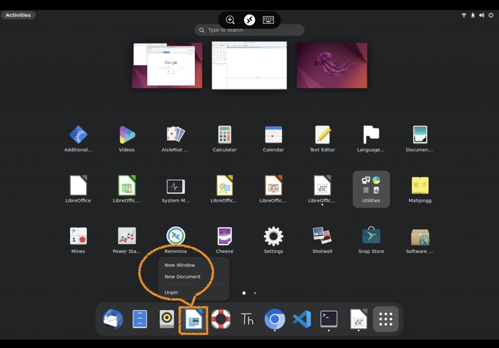 举例,我长按了 LibreOffice版的 Word,跳出了新视窗、新文件、或取消钉选3个选项,每添加一个应用
